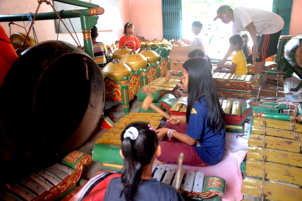 Gamelan. Alat musik ini biasanya ditemukan di beberapa daerah di Jawa Tengah, Yogyakarta. Alat musik yang terdiri dari bermacam alat yang dimainkan secara berkolaborasi tersebut lazimnya dimainkan oleh orang dewasa. Tapi kali ini alat musik ini dimainkan oleh anak anak usia Sekolah Dasar dan berada di Sumatera tepatnya di Lampung Selatan.