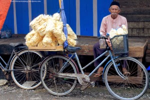 CENDANANEWS- Anak ini tidak jualan sendiri di pasar tradisional Kuala Tungkal Tanjung Jabung Jambi dia sedang menunggu ayahnya yang menjemput sayuran lain sebentar. Dengan percaya diri menyapa dan menawarkan dagangannya kepada orang yang lewat termasuk aku, Mampir Bang, Yuk?