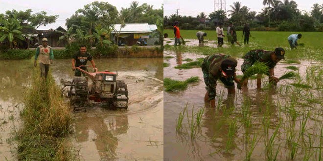Kegiatan Babinsa tersebut merupakan suatu wujud kepedulian TNI membantu masyarakat khususnya para petani untuk wujudkan program swasembada pangan yang sedang digalakkan oleh Pemerintah.