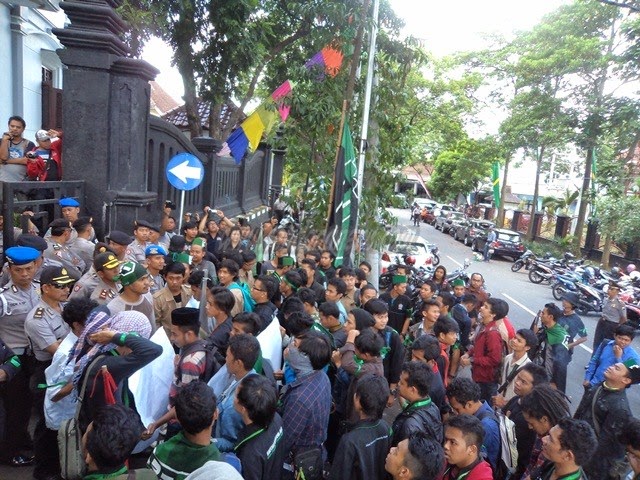 Dalam aksinya, massa aksi mengutuk keras tindakan represif anggota kepolisian terhadap massa HMI pada saat melakukan unjuk rasa di Jakarta. Bahkan kantor sekertariat bersama yang berada di Jalan Cilosari 17 Cikini Jakarta Timur diserbu polisi hanya karena aksi demo kenaikan BBM.