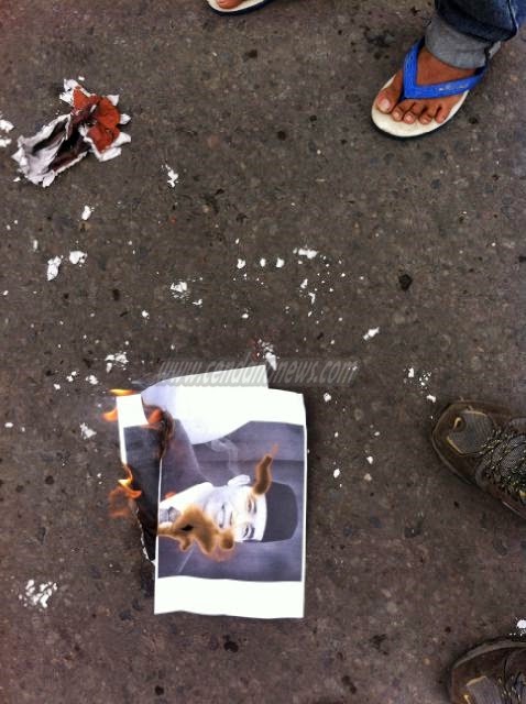 Aksi mahasiswa ini sempat memacetkan arus lalulintas karena mengambil sebagian ruas jalan raya. Aksi pembakaran foto Jokowi ini tetap di kawal polisi,