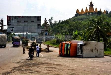 | Sebuah Motor Melintas didekat Mobil Terguling |