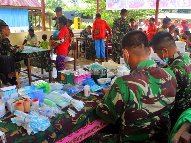 CENDANANEWS (Keerom) – Ratusan masyarakat dari Distrik Senggi, Kabupaten Keerom mengikuti kesehatan gratis yang diselenggarakan oleh anggota Pos Kotis Satgas Pamtas Yonif 133/Yudha Sakti dibantu Mantri Puskesmas Pembantu (Pustu) Kampung Web beserta unsur tokoh masyarakat Kampung Usku dari Ondoafi dan kepala Kampung.