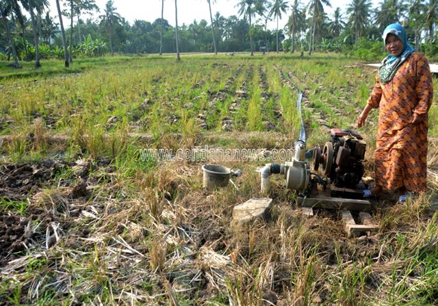 | Penggunaan pompa untuk aliri sawah |