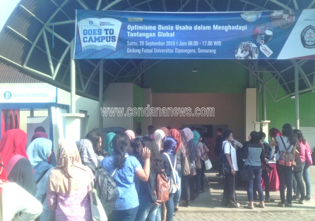 SEMARANG —– Ribuan mahasiswa rela mengantri dari pagi untuk dapat mengikuti kegiatan BI Goes To Campus yang diselengarakan di Gedung Futsal Internasional, yang berada di kawasan kampus Universitas Diponegoro ( Undip ) Tembalang, Semarang.
