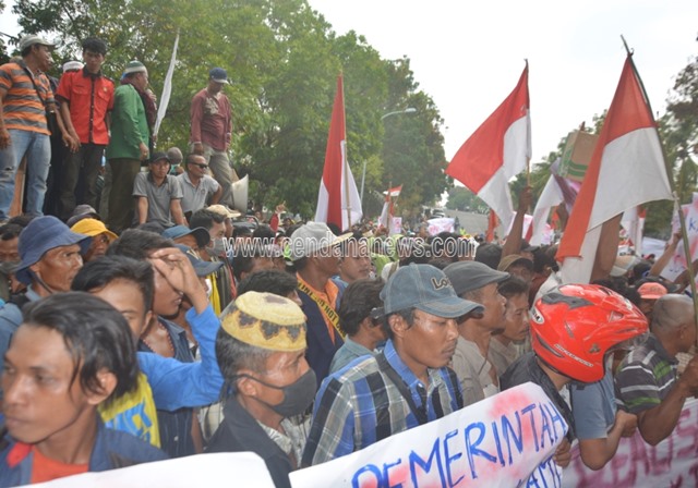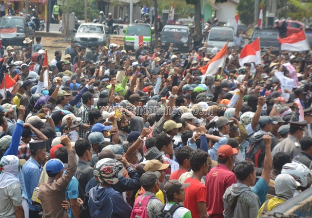 Aksi massa penduduk Lampung Selatan yang menempati lahan Register 1 Way Pisang dari 10 desa di Kecamatan Ketapang, Kecamatan Sragi, Kecamatan Penengahan yang lahannya sebagian akan digunakan untuk peternakan sapi.
