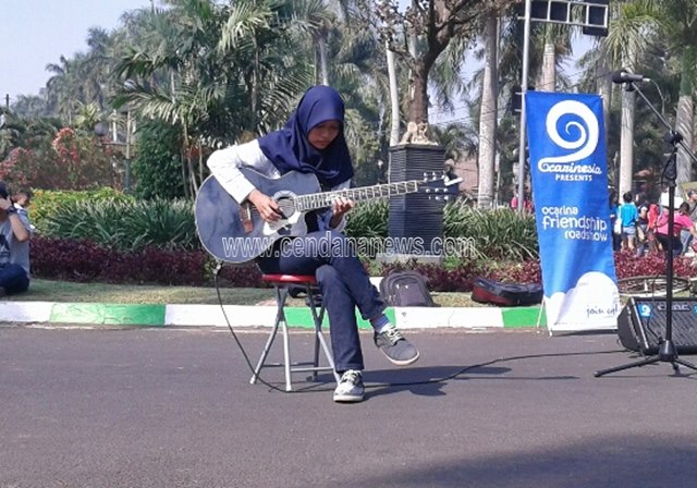 Dari pantauan Cendana News ada satu tempat di CFD yang cukup banyak menarik perhatian para pengunjung terutama anak-anak muda. Benar saja ternyata di tempat ini ada beberapa anak muda yang sedang mempertunjukkan kebolehannya dalam memainkan instrumen alat musik gitar dan juga ocarina.