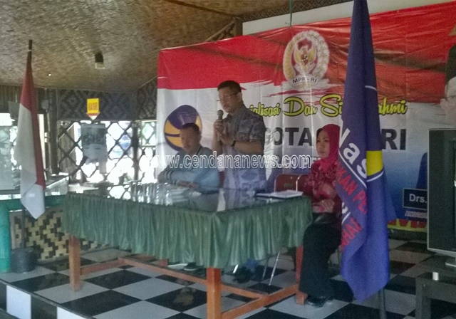 LUMAJANG — Anggota komisi III DPR RI Fraksi Partai Nasdem, Taufiqulhadi sosialisasikan Empat Pilar MPR RI kepada anggota ormas LDII Lumajang di Warung biru, Kabupaten Lumajang, Jawa Timur, Jumat (09/10/2015).