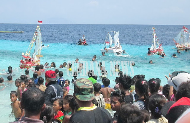 | Parade laut oleh kapal – kapal penangkap ikan sebelum ritual adat dilaksanakan. |