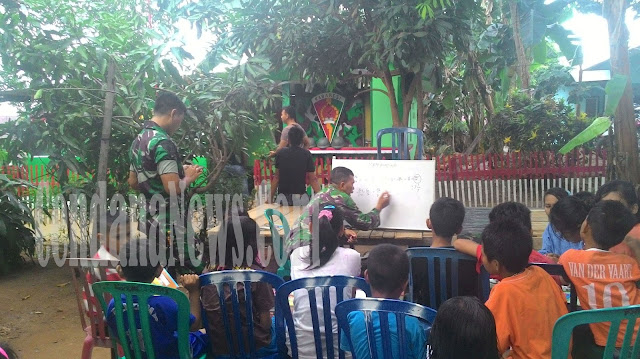 Pantauan Cendana News, Jumat (12/2/2016) menerangkan, para siswa SD dan SMP tampak akrab dan ceria serta antusias mengikuti proses belajar yang digelar oleh personel Satgas Pamrahwan Yonif 731/Kabaresi Pos 7/Pohon Mangga.