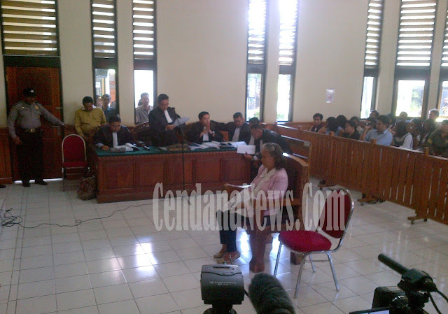 BALI—Sidang lanjutan kasus pembunuhan Engeline kembali dilanjutkan di Pengadilan Negeri (PN) Denpasar siang ini. Sidang dengan terdakwa Margriet Christina Megawe itu memasuki materi pembelaan atau pledoi. Mengenakan blazer berwarna merah muda dengan dalaman putih dan celana hitam, Margriet terlihat tenang menghadapi persidangan. Begitu diberikan kesempatan untuk menyampaikan pembelaannya, Margriet membacakan sendiri pembelaan atas kasus yang tengah membelitnya.