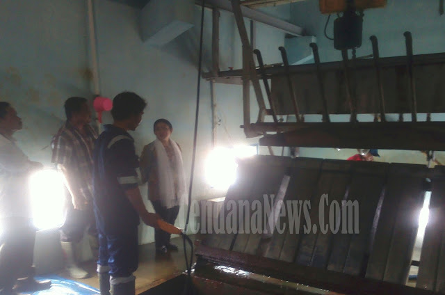 | Titiek Soeharto meninjau langsung mesin produksi es |