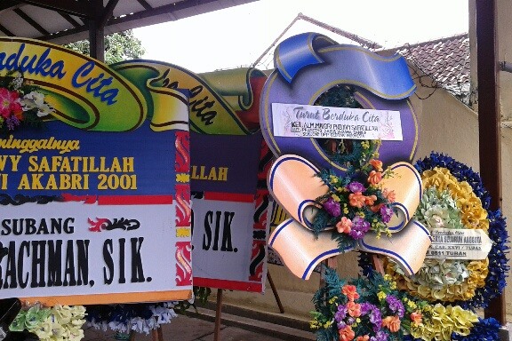 | Karangan bunga di rumah orang tua Pilot Pesawat yang Jatuh di Malang, Ivy Safatillah |