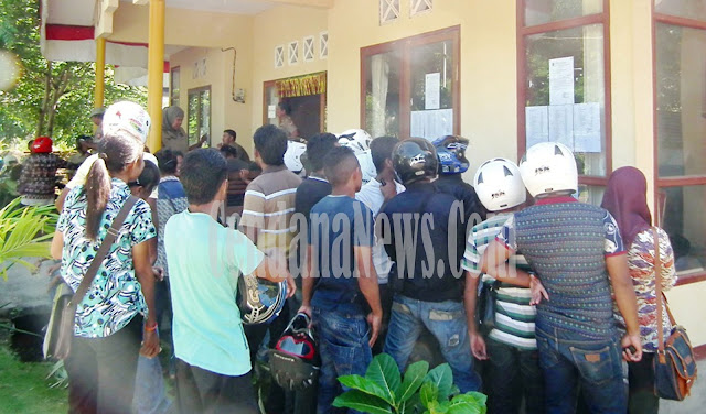 | Para peserta tes Satpol PP Sikka sedang melihat hasil pngumuman di Kantor Satpol PP Sikka |