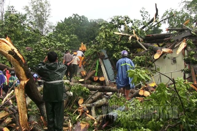 | Suasana evakuasi pohon tumbang |