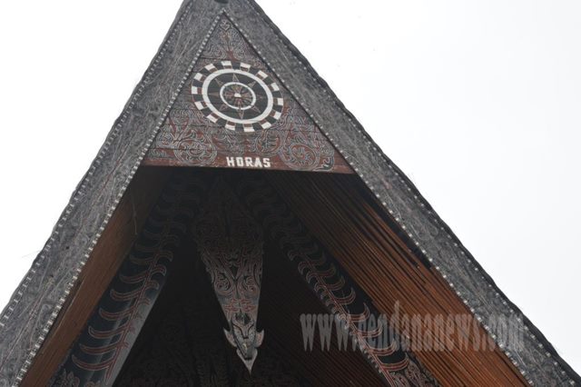 “Dipintu masuk ada tulisan : ‘Habonaron Do Bona’ yang berarti Kebenaran itu adalah Pokok. Kalimat ini merupakan tata tuntunan perilaku kehidupan sehari-hari masyarakat Batak Simalungun yang mengajarkan tentang nilai-nilai luhur Ketuhanan Yang Maha Esa, Manusia, Alam, serta hubungan antara manusia dengan Tuhan, sesama manusia, dan dengan alam sekitarnya,” pungkas Sitorus.