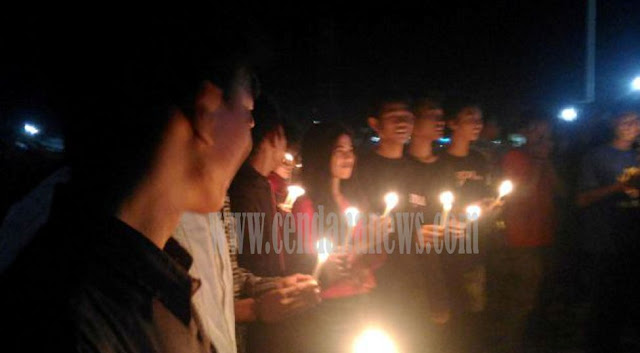 Pantauan Cendana News selain pembacaaan puisi, penyalaan ribuan lilin para peserta mengenakan pita hitam di kepala dan tangan kiri sebagai tanda berduka dan simbol ketidakberdayaan. Kegiatan 1000 Lilin Solidaritas Untuk Mistiana dilakukan dengan melakukan doa bersama untuk semua korban kekerasan terhadap anak. Kegiatan tersebut mendapat pengawalan dari anggota Polsek Sribawono. (Henk Widi)