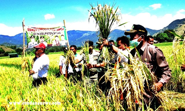 MAUMERE — Bupati Sikka, Yoseph Ansar Rera menghimbau petani untuk terus meningkatkan produksi pertanian dalam mendukung swasembada pangan. Hal tersebut disampaikan perdana padi sawah di kecamatan Magapenda, Rabu (11/5/2016).
