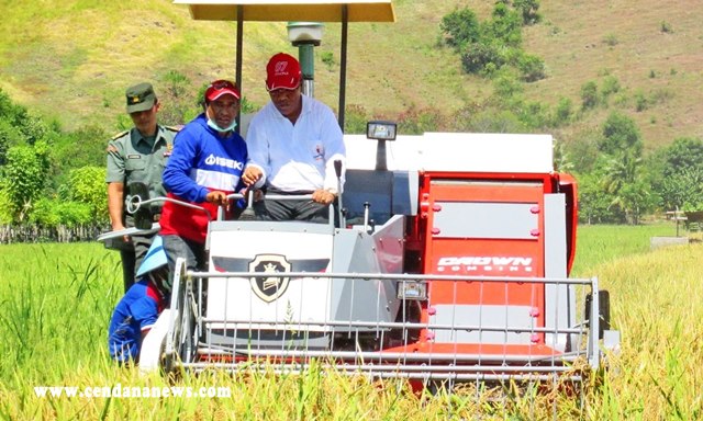 Disasksikan Cendana News, panen perdana dilakukan bupati Sikka dengan memakai mesin perontok bantuan pemerintah pusat yang juga langsung memisahkan gabah dan batang padi. Padi yang sudah dipanen diletakan di tengah sawah dan diangkut sepeda motor khusus dan dibawa ke gudang penampungan.