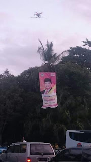 BALI—Banyak cara dilakukan kandidat Ketua Umum DPP Partai Golkar untuk mencuri perhatian peserta Munaslub yang digelar di BNDCC,Nusa Dua Bali 14-16 Mei 2016. Salah satunya seperti yang dilakukan kandidat nomor urut 1, Ade Komaruddin.Ketua DPR RI itu menggunakan drone untuk menerbangkan banner dirinya. Sontak saja, pesawat tanpa awak yang membawa banner Akom itu menjadi pusat perhatian peserta Munaslub.