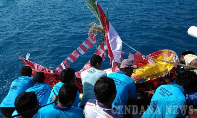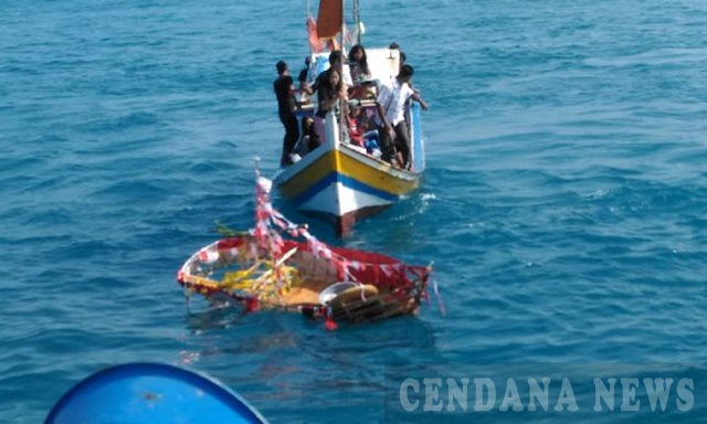 Disebutkan, proses sesaji dilarung dilakukan puluhan kapal dan nelayan dengan mengitari tanjung tua sebanyak tiga kali. Selanjutnya masyarakat melakukan pembersihan kapal yang digunakan melaut dengan cara melakukan penyiraman menggunakan air laut.