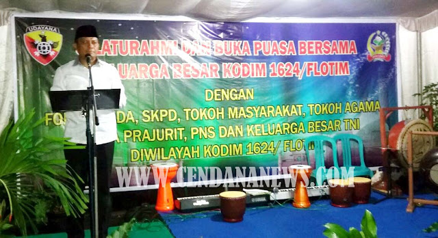 LARANTUKA — Kodim 1624 Flotim, Selasa (28/6/2016) malam menggelar acara silaturahmi dan buka puasa bersama di Makodim 1624 Flotim di Larantuka, Kabupaten Flores Timur (Flotim). Acara ini dihadiri keluarga besar Kodim 1624 Flotim bersama unsur Forkopimda, SKPD, tokoh masyarakat, tokoh agama serta PNS.