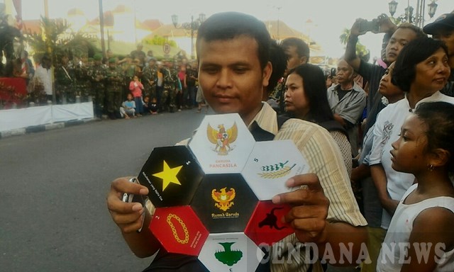 Lambang Garuda Pancasila berukuran raksasa diarak oleh ratusan TNI dari berbagai kesatuan dan masyarakat, diikuti lambang kelima sila Pancasila. Sejumlah barisan terdiri dari kyai, pendeta dan sejumlah tokoh dari semua agama yang diakui di Indonesia pun turut dalam kirab tersebut sebagai lambang kerukunan antar umat beragama.