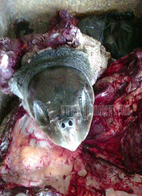 Kepada Cendana News Minggu (26/06/2016) salah satu pedagang yang ditemui mengatakan, penyu tersbut ditangkap oleh N yang berprofesi sebagai nelayan, N sempat diperingatkan oleh pedagang lainnya yang berada di pasar agar tidak membunuh dan dagingnya yang akan dijual belikan karena penyu masuk dalam spesies langka yang dilindungi.