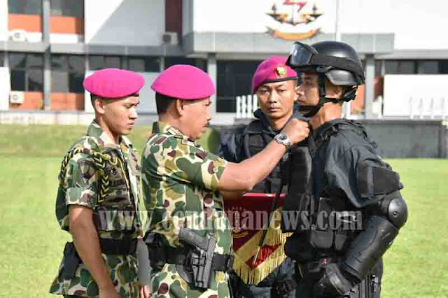 “Jadilah seorang prajurit yang memiliki jati diri, dan tingkatkanlah terus kemampuan profesionalisme yang telah kalian terima, agar kalian mampu melaksanakan tugas yang di bebankan sebagai pasukan khusus anti teror aspek laut.” Pungkas Dankormar.