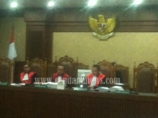 | Profesor Budi Sampurna sedang memberikan kesaksian didepan Majelis Hakim |