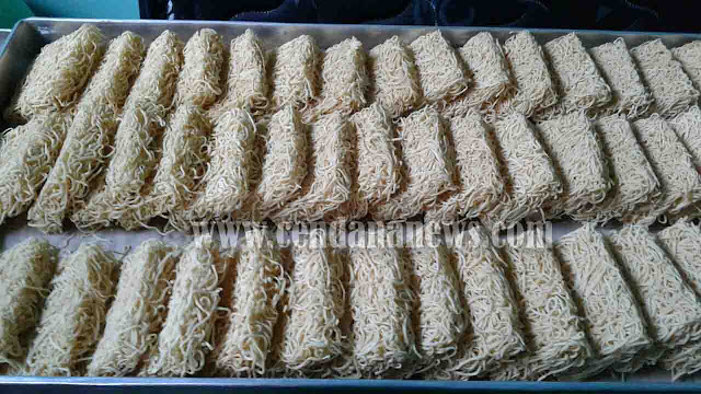 “Dari bentuk mentah tersebut, selanjutnya mie di kukus untuk kemudian di keringkan menggunakan oven. Setelah itu didiamkan beberapa menit baru kemudian di masukkan ke dalam kemasan bersama dengan kemasan bumbunya,” terangnya.
