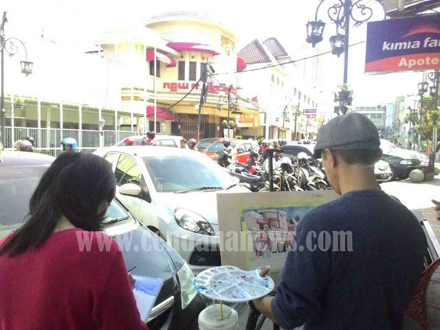 BANDUNG — Seorang seniman cat air, tampak asik menjinakkan kuasnya dengan objek Gedung Asia Afrika Cultural Centre (AACC), di Jalan Braga, Kota Bandung, Selasa (2/8/2016). Gedung yang semula bernama Bioskop Majestik tersebut memang salah satu bangunan bersejarah di Kota Kembang, mengingat didirikan sejak tahun 1925 silam.