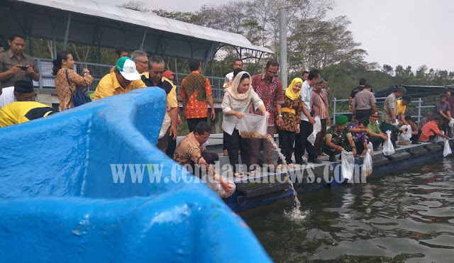 Titiek dalam kunjungannya di Waduk Sermo pun menyempatkan diri menebar benih ikan nila sebanyak 20.000 ekor, yang diharapkan bisa menjadi inspirasi warga sekitar akan pentingnya pemanfaatan waduk sebagai sarana budi daya perikanan air tawar, yang juga memiliki andil bagi tercipatnya kedaulatan protein.