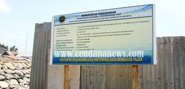 Disaksikan Cendana News, pembangunan pelabuhan masih berjalan. Terlihat beberapa alat berat sedang melakukan pengerjaan di dalam areal pelabuhan. Data yang tertera di papan proyek menyebutkan pengerjaan dilakukan PT. Bumi Indah.