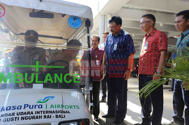 BALI — Untuk menunjang pelayanan kesehatan secara terpadu dan maksimal bagi pengguna jasa kebandarudaraan, PT Angkasa Pura I (Persero) Bandar Udara I Gusti Ngurah Rai memberikan bantuan 1 unit Boogie Ambulance kepada Kantor Kesehatan Pelabuhan (KKP), Jumat (23/9/2016).
