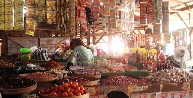 | Suasana pedagang sembako sedang menjajalkan barang dagangannya di pasar tradisional Kabupaten Sumenep. |