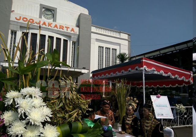 Mengenakan busana pengantin adat Jawa, tujuh pasangan calon pengantin berasal dari berbagai daerah di DI Yogyakarta dinikahkan di halaman depan Stasiun Tugu Yogyakarta. Mereka merupakan pasangan pengantin peserta menikah bersama bertajuk Nikah Bareng ning Stasiun Tugu (Nikah Bareng di Stasiun Tugu), yang diadakan oleh Forum Ta’aruf Indonesia (Fortais), bekerja sama dengan Pemerintah Kota Yogyakarta dan PT Kereta Api Indonesia Daerah Operasi (Daop) VI.’