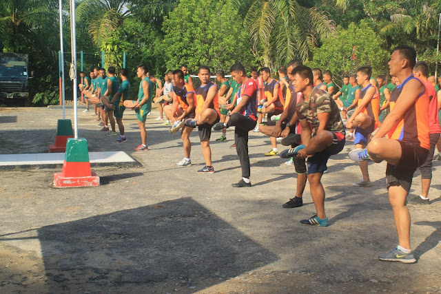“Prajurit TNI AD yang tergabung dalam Satuan Tugas Pengamanan perbatasan RI-Malaysia melakukan olahraga bersama dengan Tentera Darat Diraja Malaysia (TDM) di Pos Gabma Kotis Entikong” ujarnya.