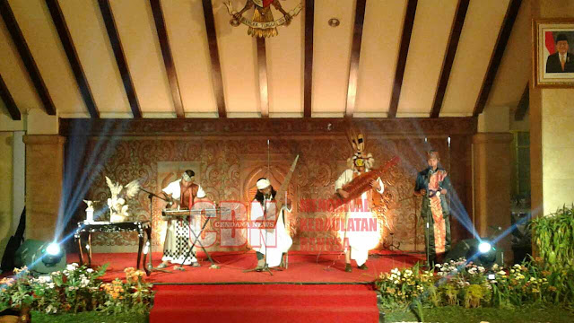 Sementara itu acara pembukaan yang di mulai pukul 19.00 WIB ini di meriahkan oleh penampilan penari Tari Topeng Bapang, Tari Topeng Tua dari Bali, Dawai Nusantara dan kemudian di akhiri oleh aksi kocak dari seniman sekaligus pelawak Topan.