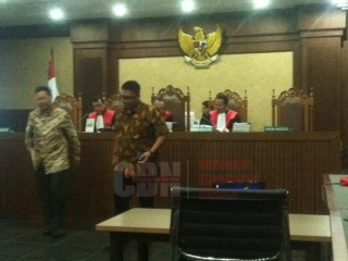 | Saksi fakta, Hartanto Sukmono (kiri) dan Saiful Hayat (kanan) dihadirkan dalam persidangan Kopi Sianida |