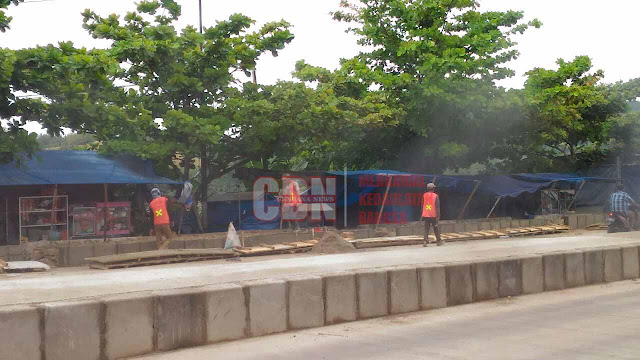 Pantauan Cendana News beberapa pekerja tengah melakukan proses pembangunan separator dan trotoar jalan dan proses pembangunan tersebut bersamaan dengan proses pembangunan lokasi toko toko khusus yang disediakan untuk penjualan oleh oleh. Beberapa los toko penjualan oleh oleh berada tak jauh dari kantor Desa Bakauheni tepat di depan Menara Siger.