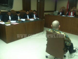 | Terdakwa La Nyalla M. Mattalitti duduk di kursi persidangan |