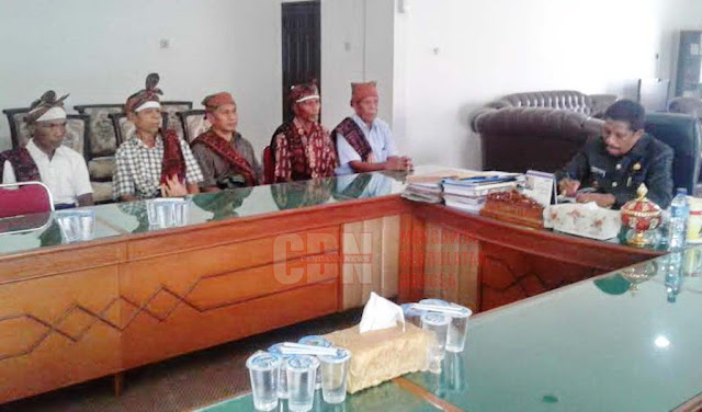ENDE — Masyarakat Adat Wolotopo, Kecamatan Ndona Kabupaten Ende Kamis (8/9/2016) siang mendatangi kantor bupati. Kedatangan utusan masyarakat adat tersebut guna meminta Bupati Ende, Ir.Marselinus Y.W. Petu segera menyelesaikan konflik tapal batas.