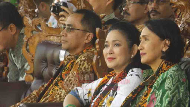 | Titiek Soeharto sesaat sebelum diundang ke panggung untuk International Launching Bunga Sun Patiens |
