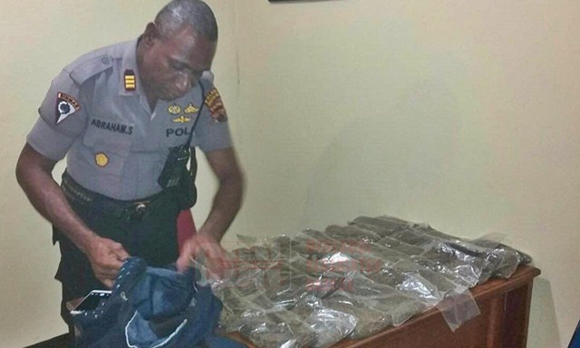 “Kami berhasil mengamankan 38 bungkus plastik bening ukuran besar, isinya Narkotika jenis ganja kering yang berada didalam tas punggung warna hitam. Kalau ditimbang tadi beratnya lebih dari 3 kilogram,” kata Kapolsek KPL Jayapura, AKP Abraham Soumilena.