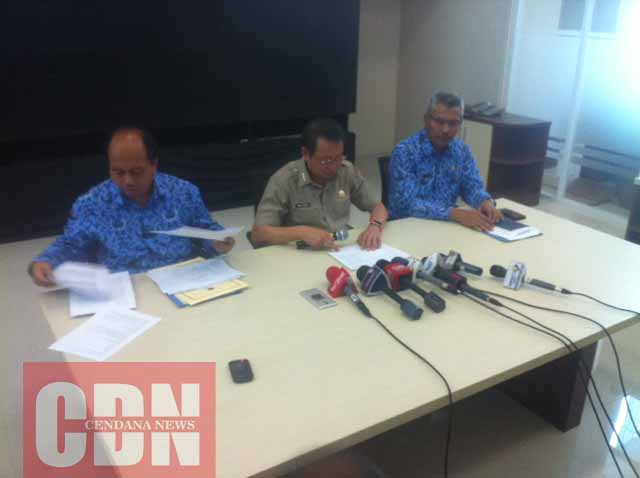 | Sutopo Purwo Nugroho (kiri) dan Willem Rapangilie (tengah) saat jumpa pers di Kantor BNPB. |
