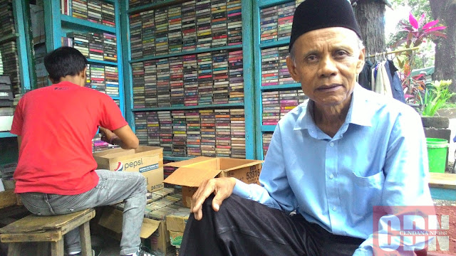 Ondi Turiat di depan lapak kasetnya,