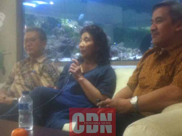 Manteri KKP Susi Pudjiastuti (tengah) saat jumpa pers di rumah dinasnya.