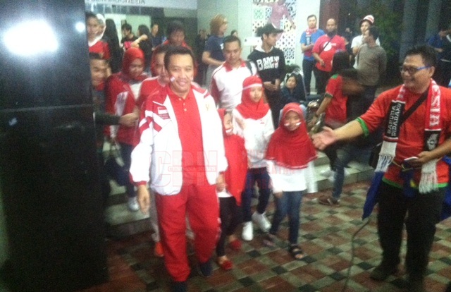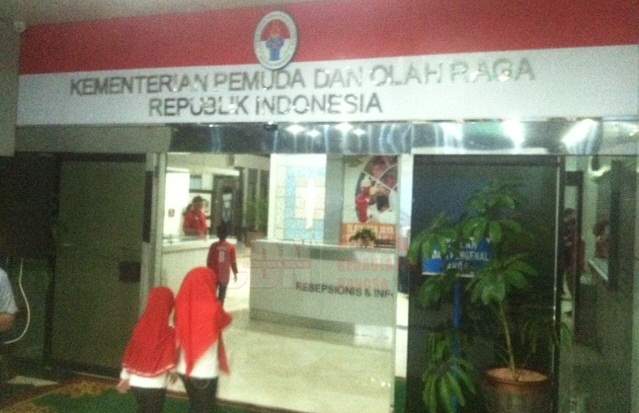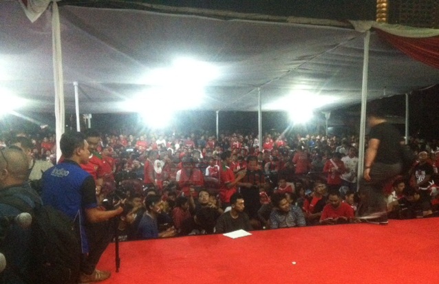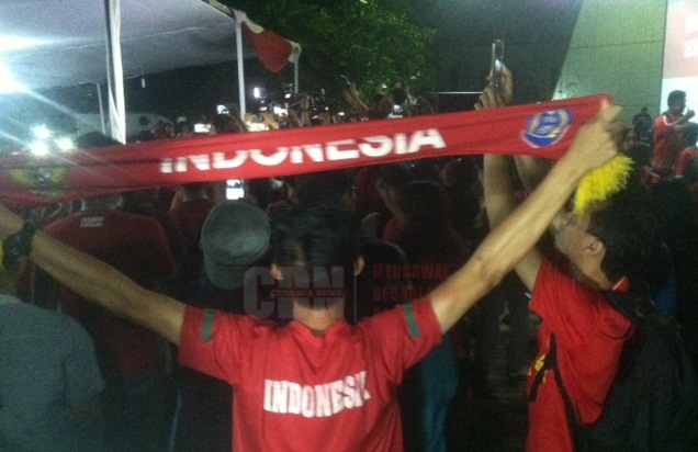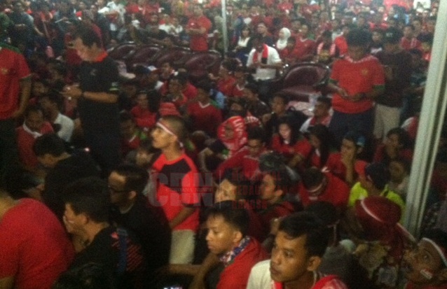 Berikut ini foto suasana nonton bareng di depan Kantor Kemenpora Jakarta;