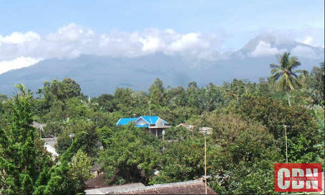 | Gunung Rinjani dari kejauhan nampak diselimuti kabut. |